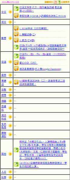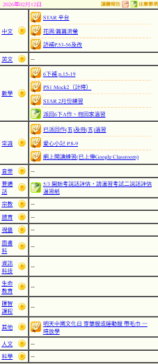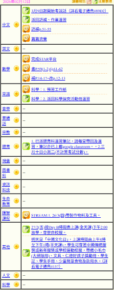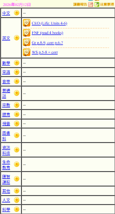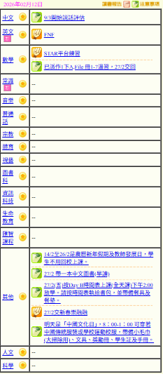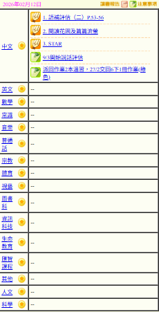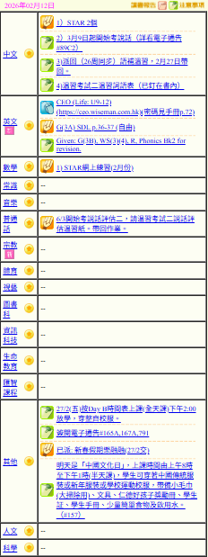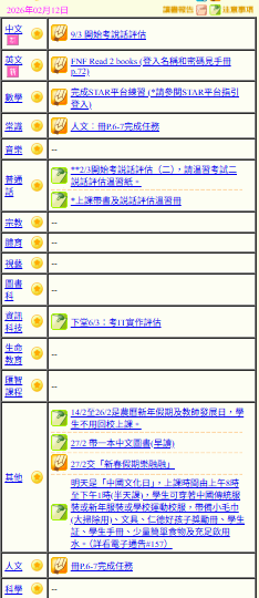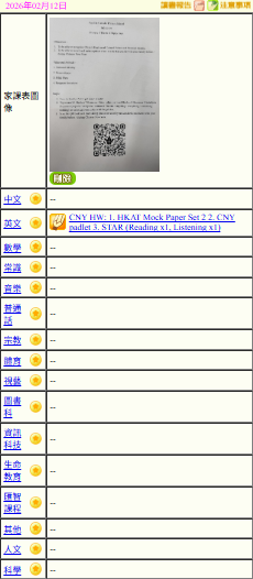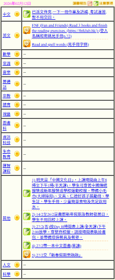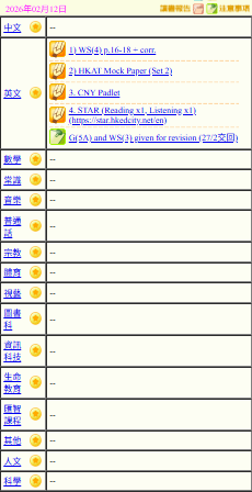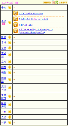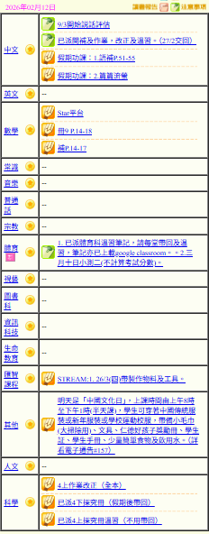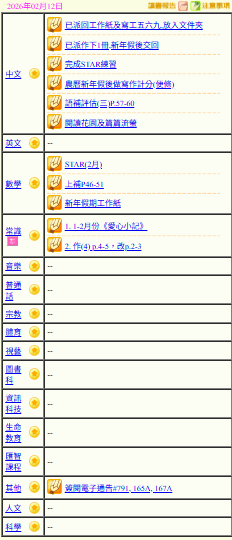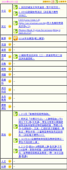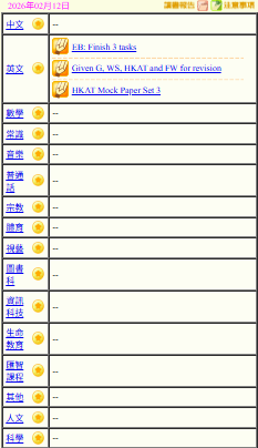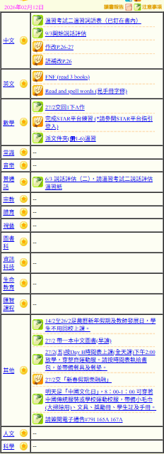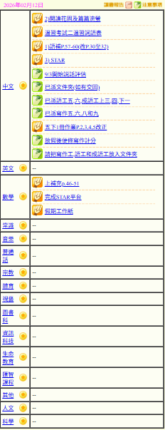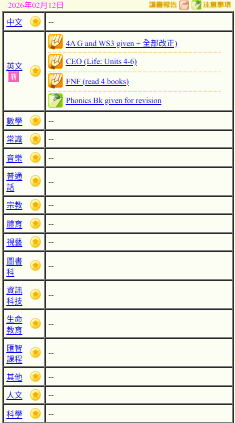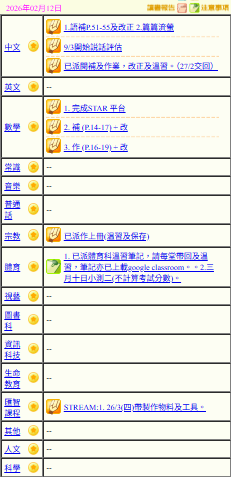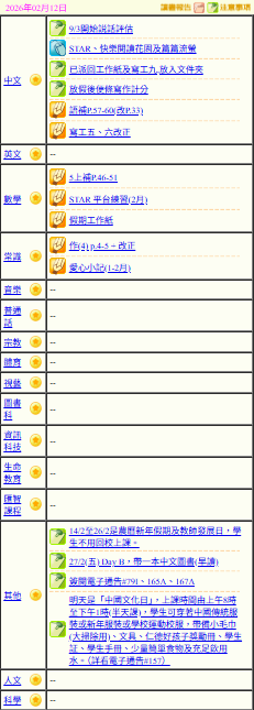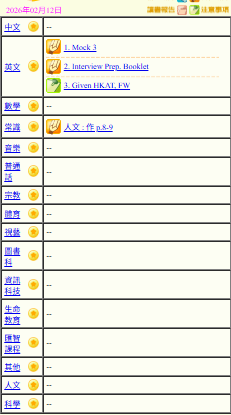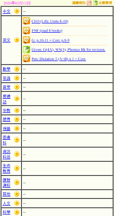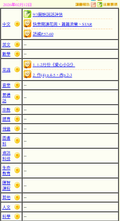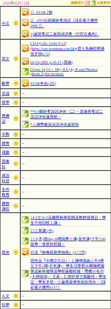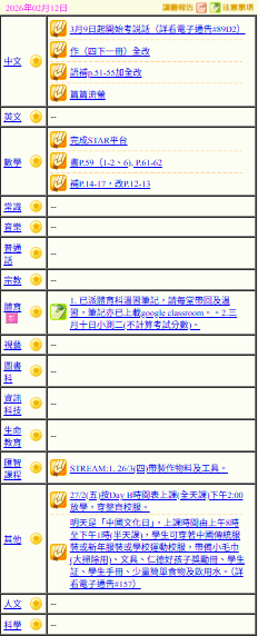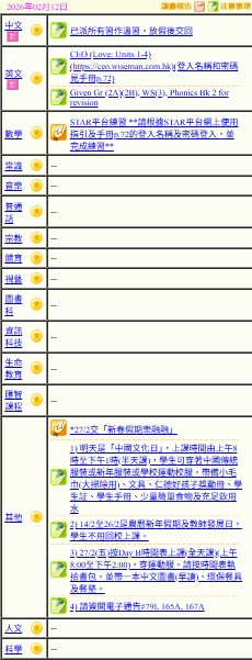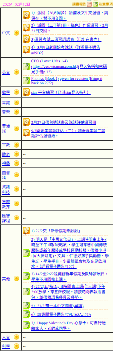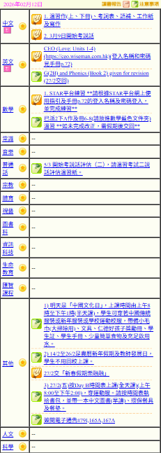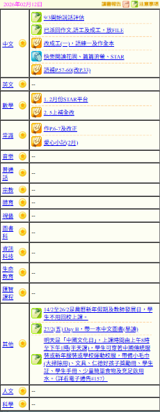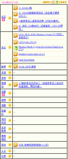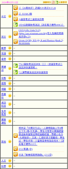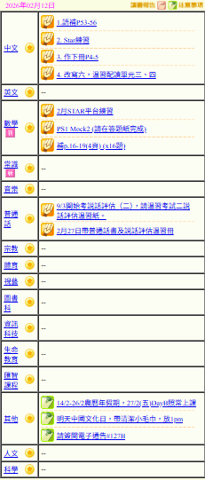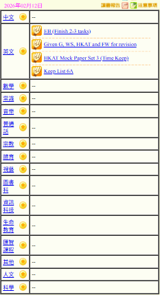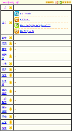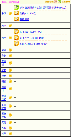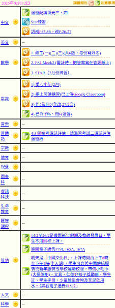 - 班別家課