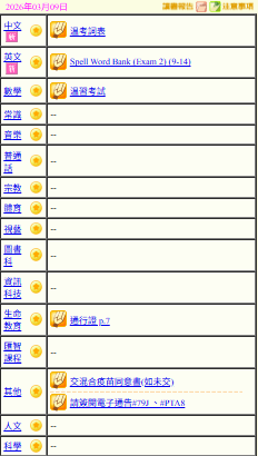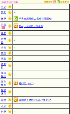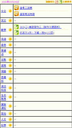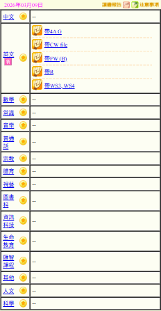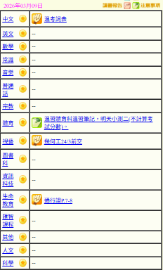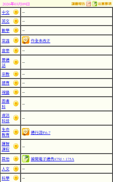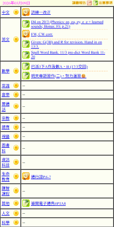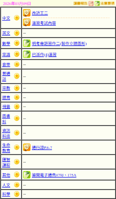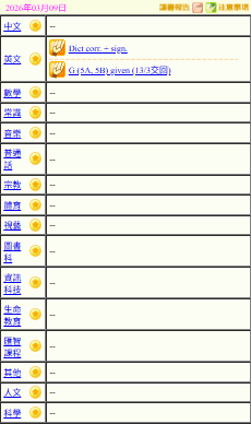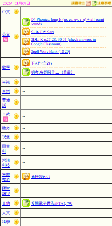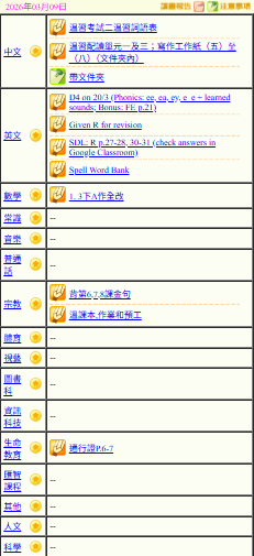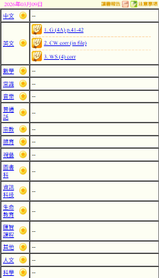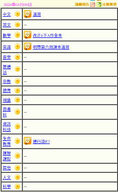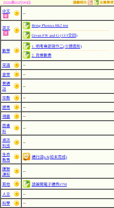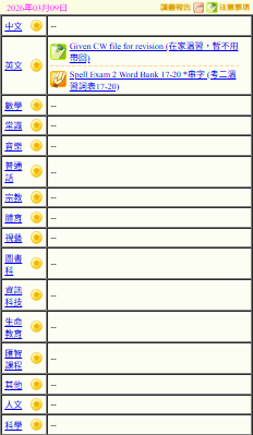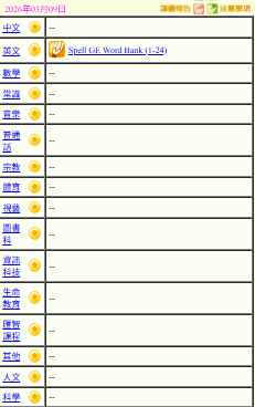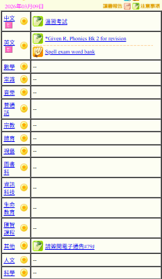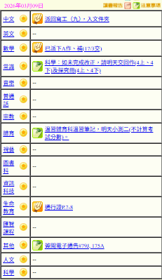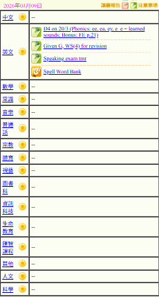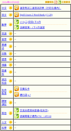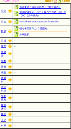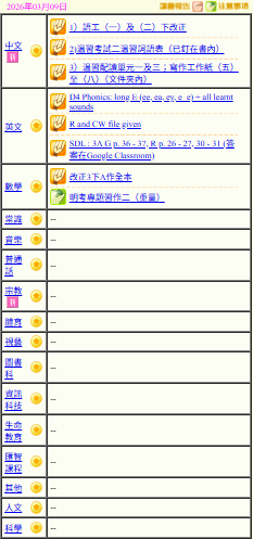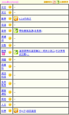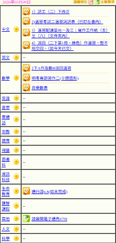 - 班別家課