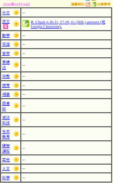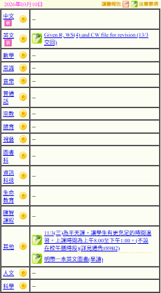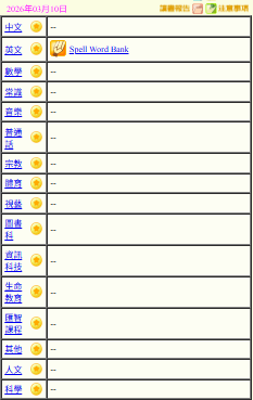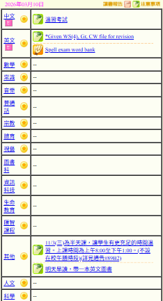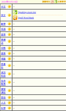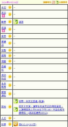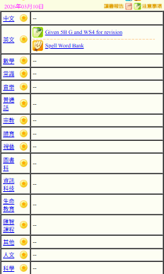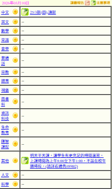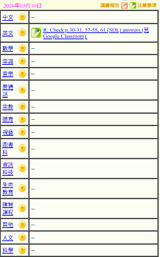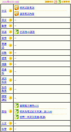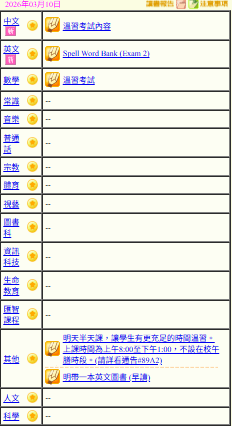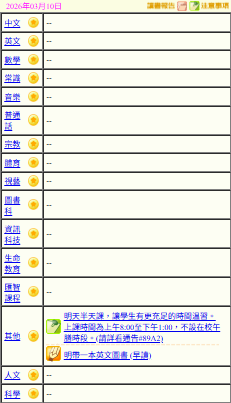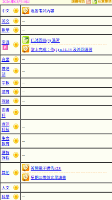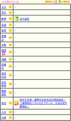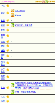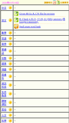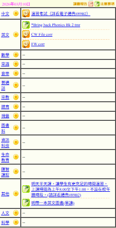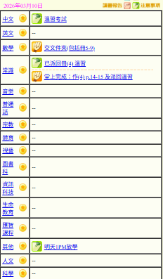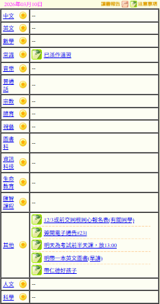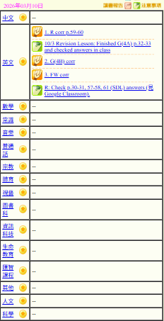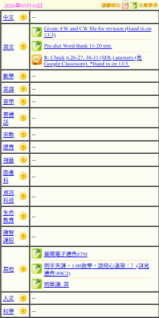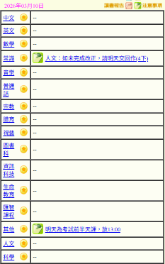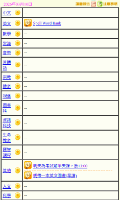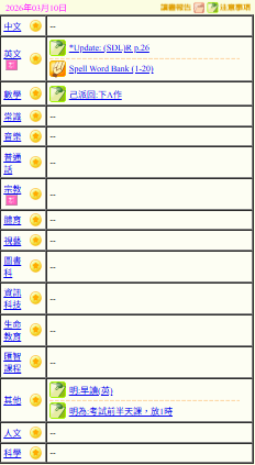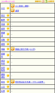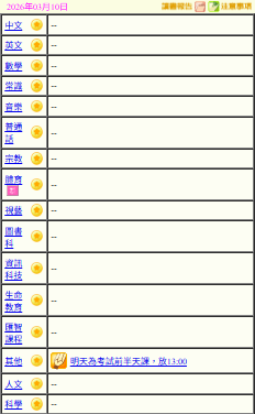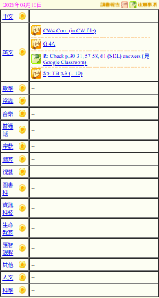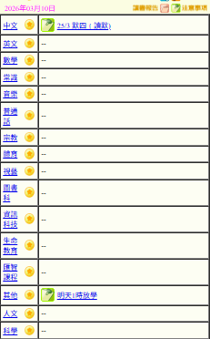 - 班別家課