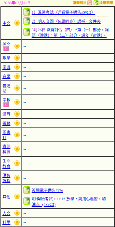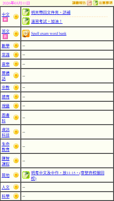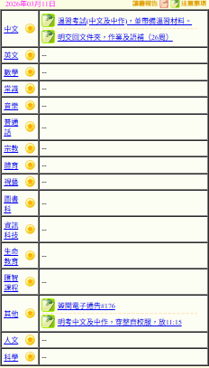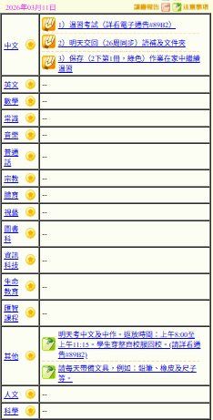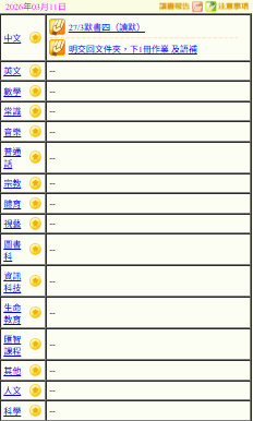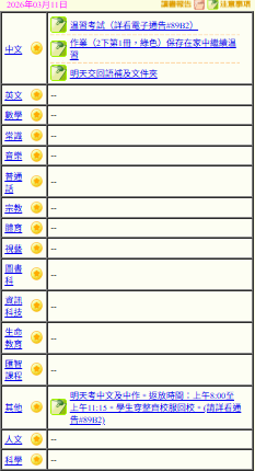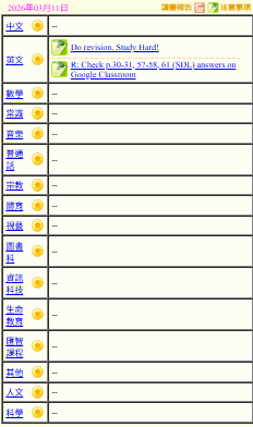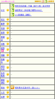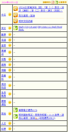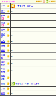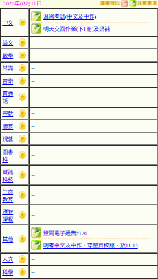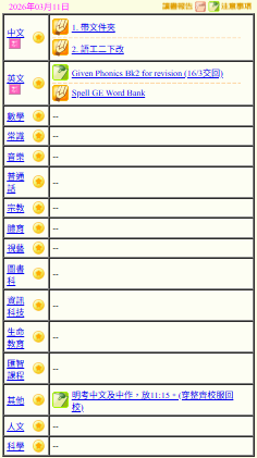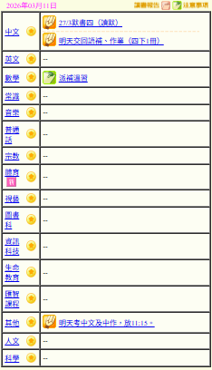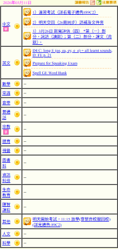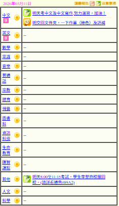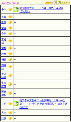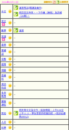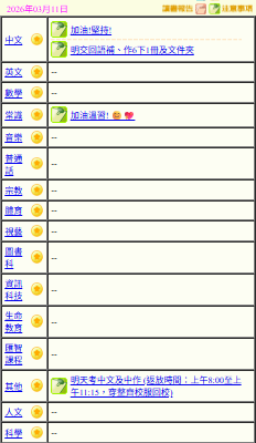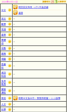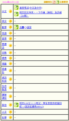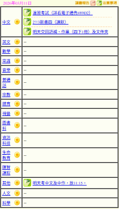 - 班別家課