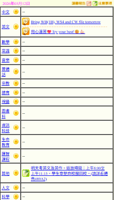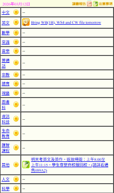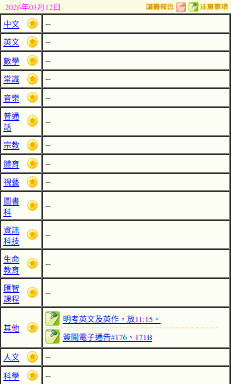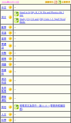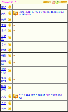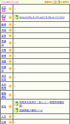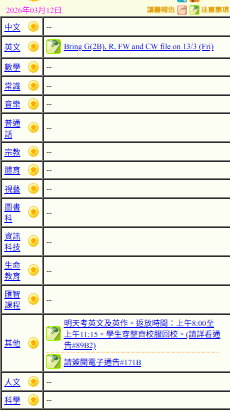 - 班別家課
