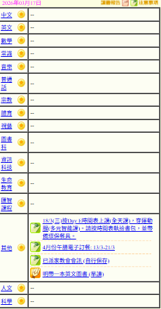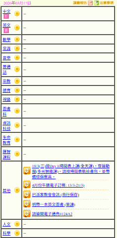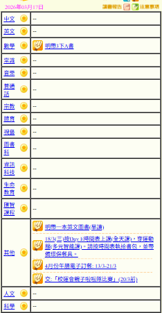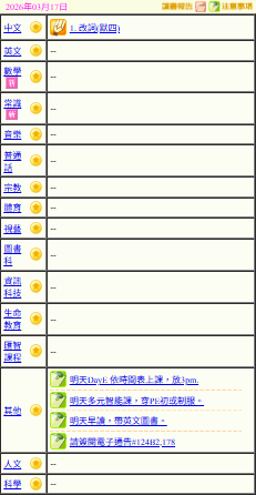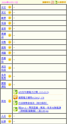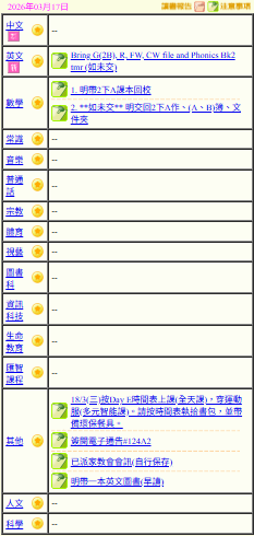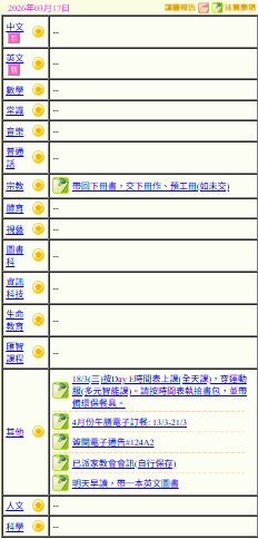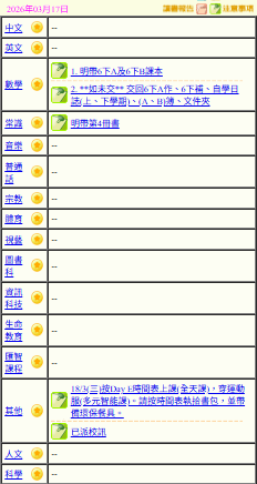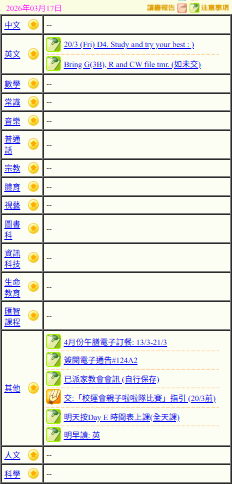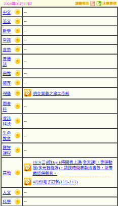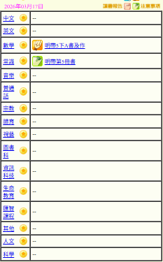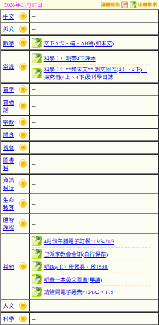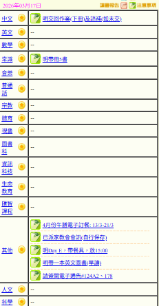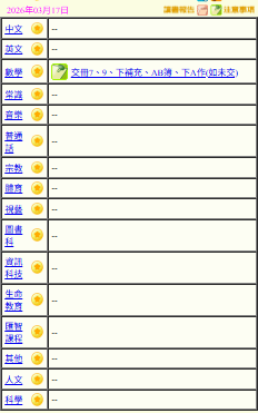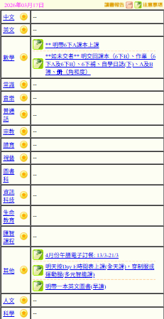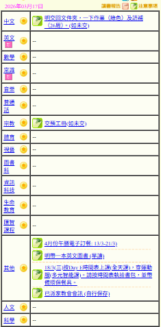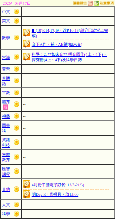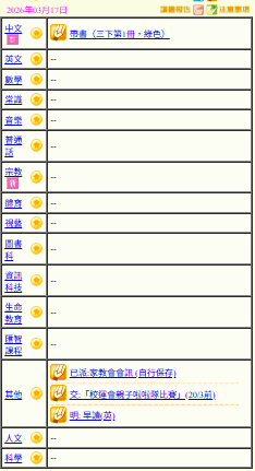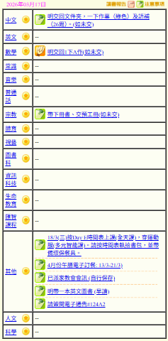 - 班別家課