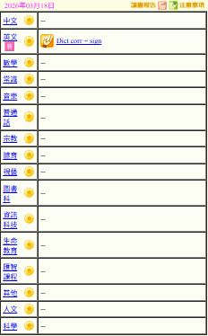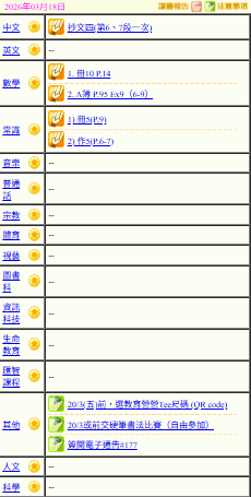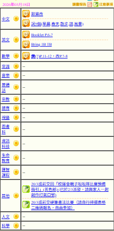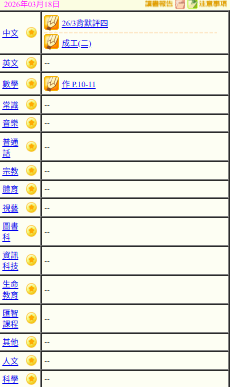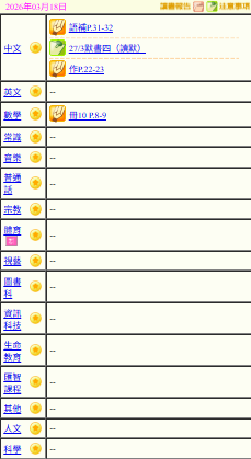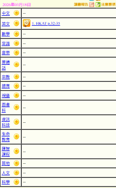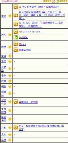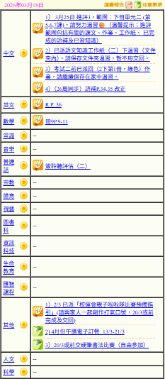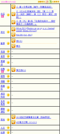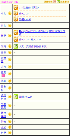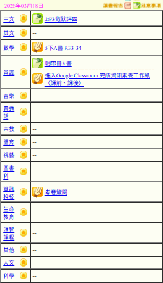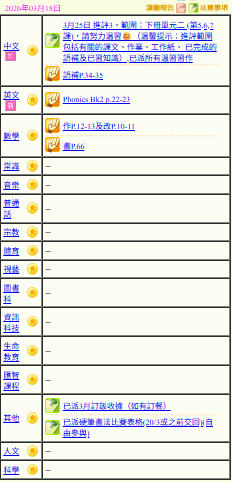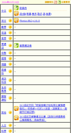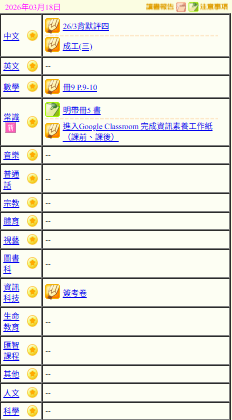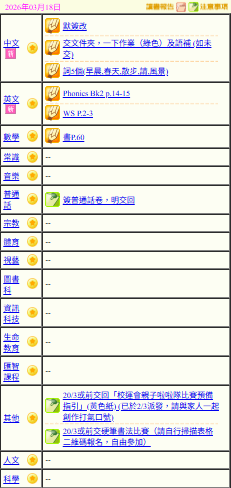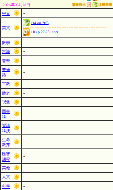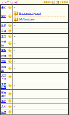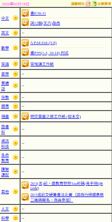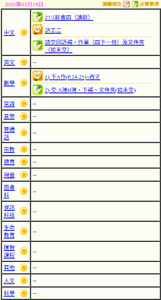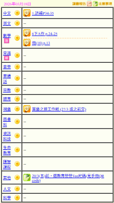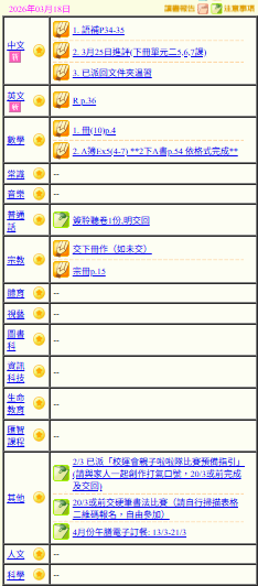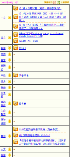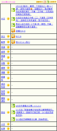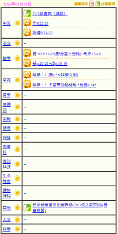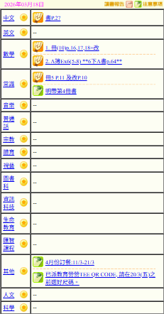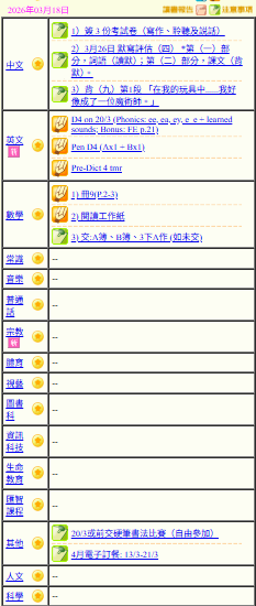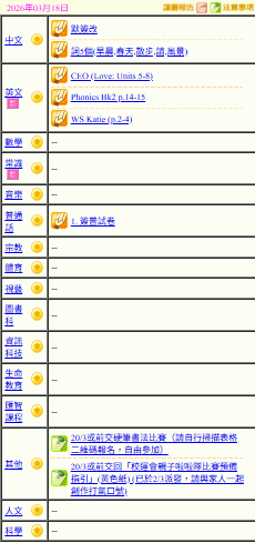 - 班別家課