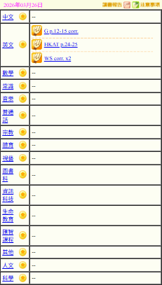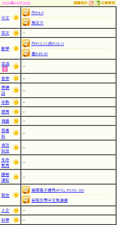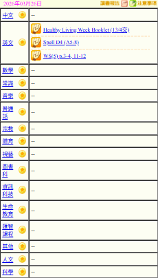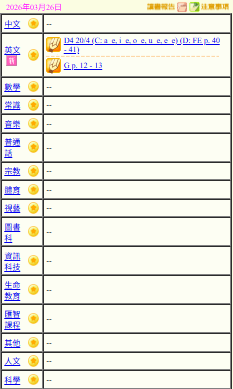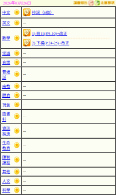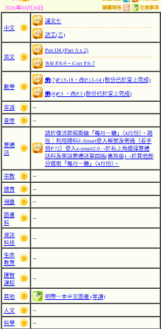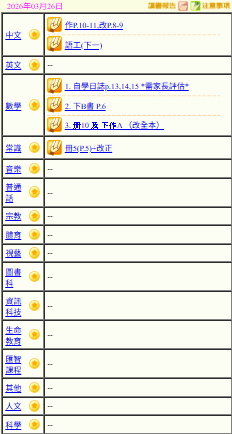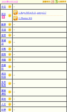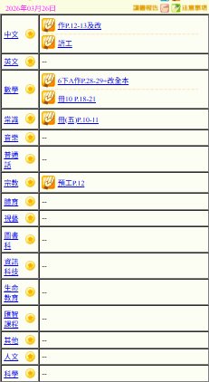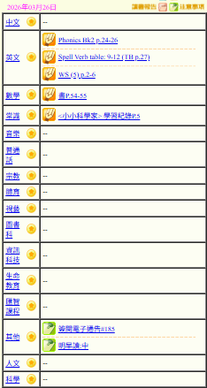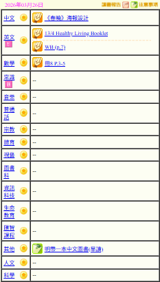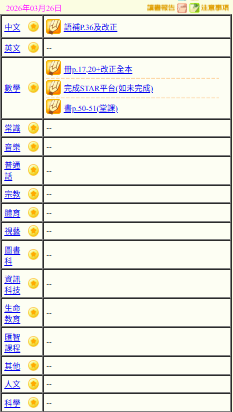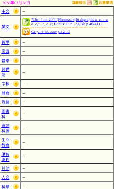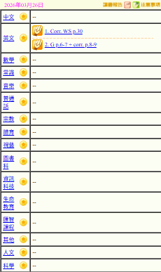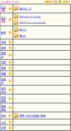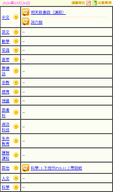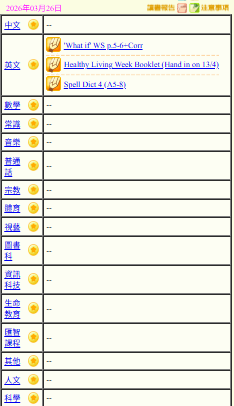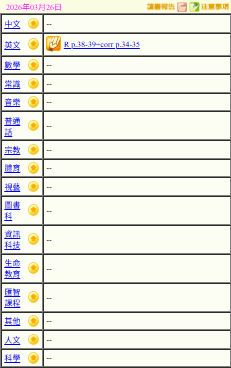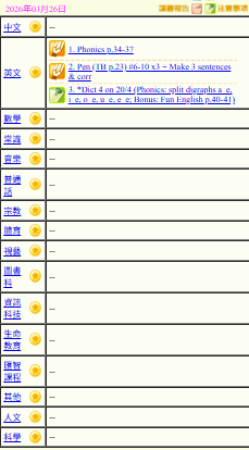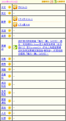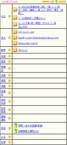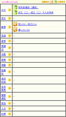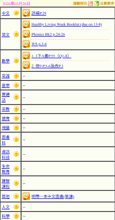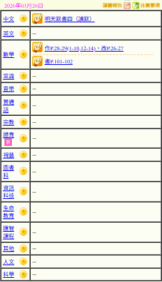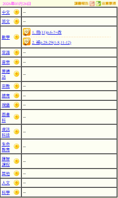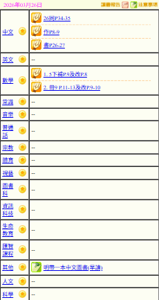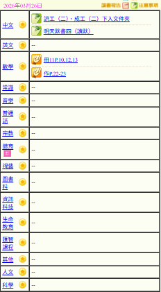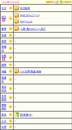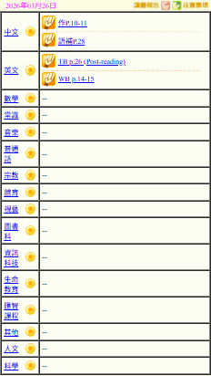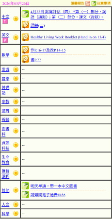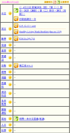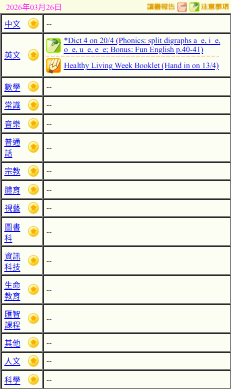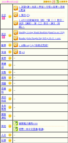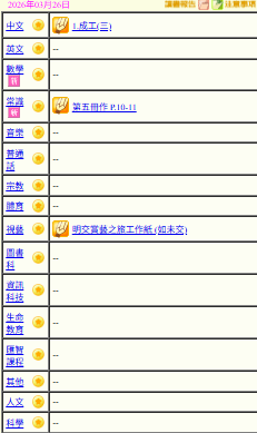 - 班別家課