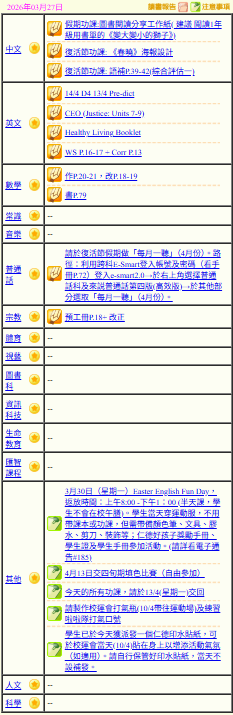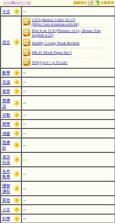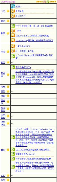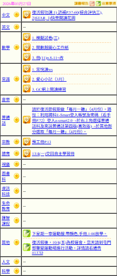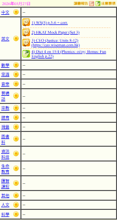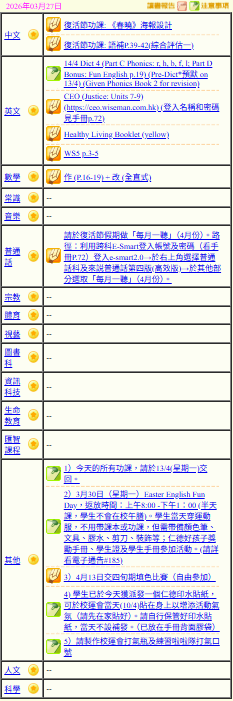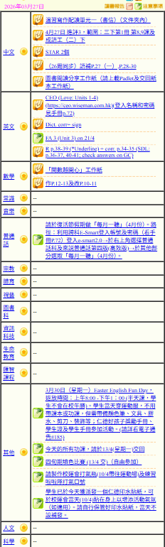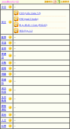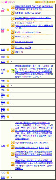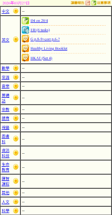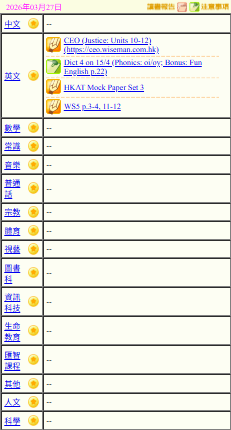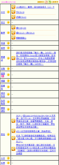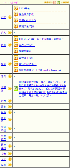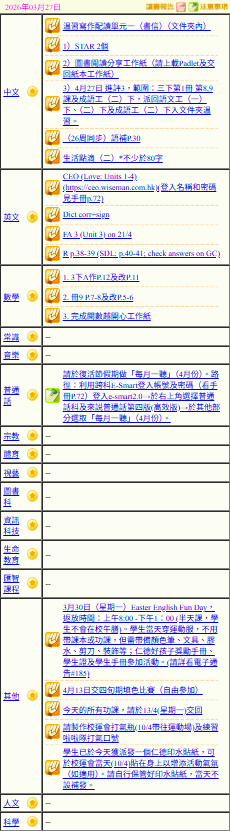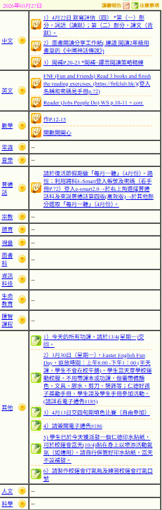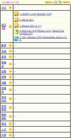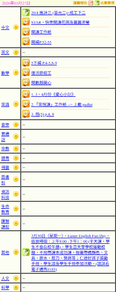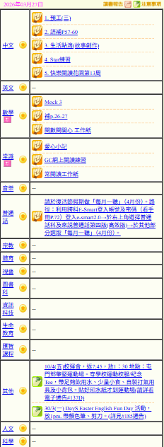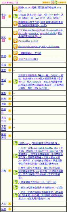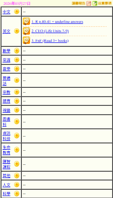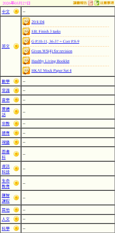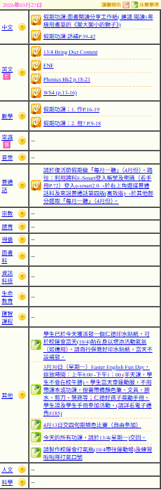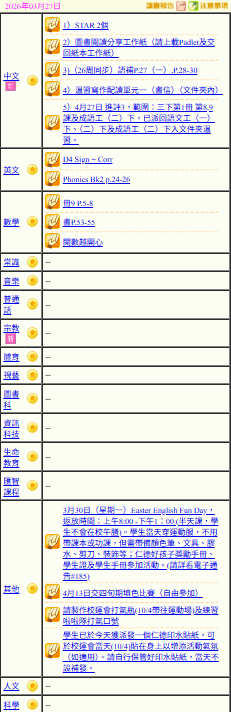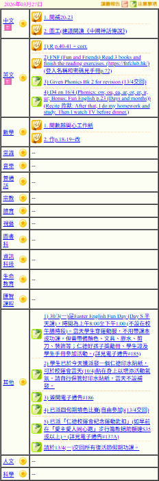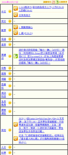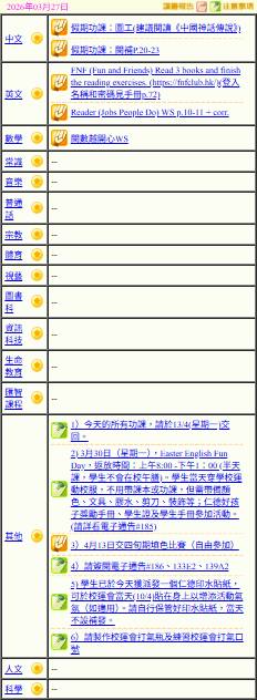 - 班別家課