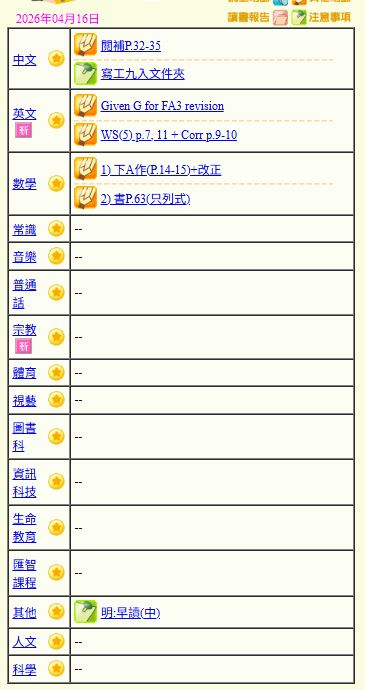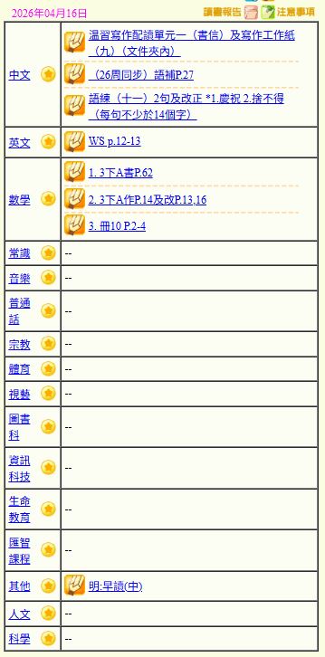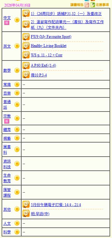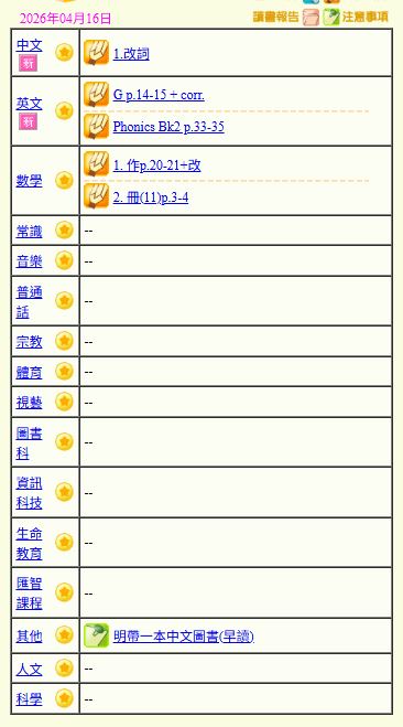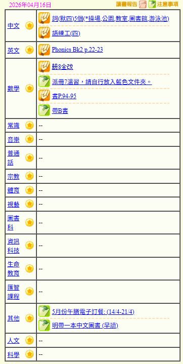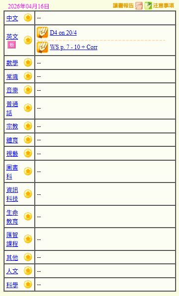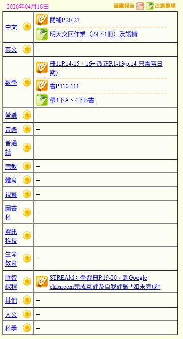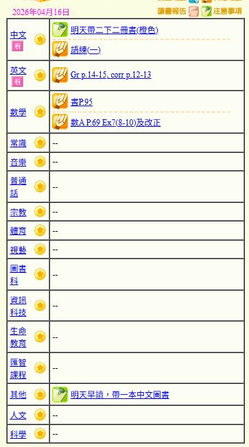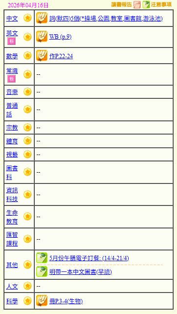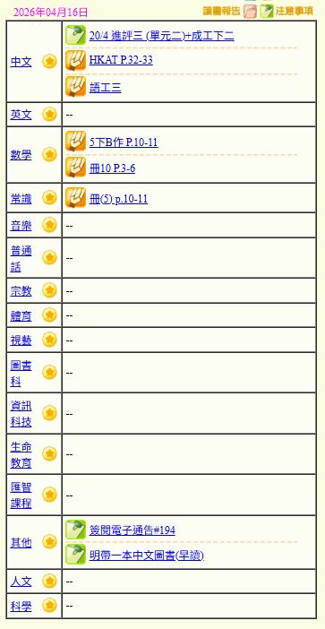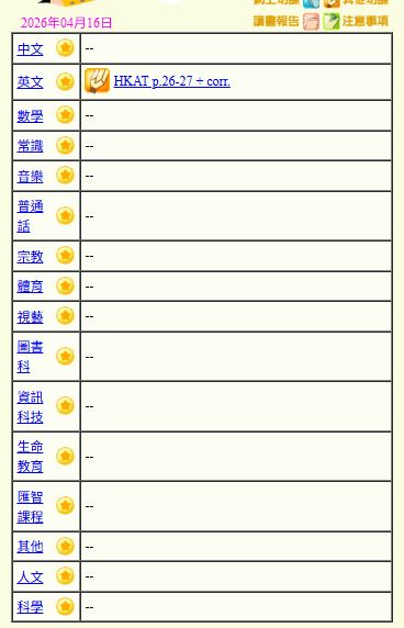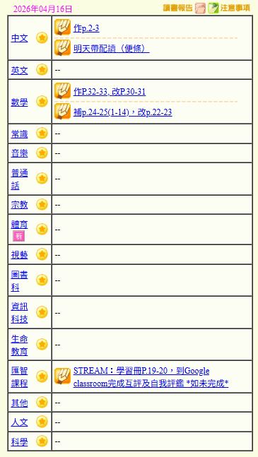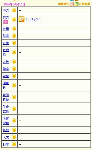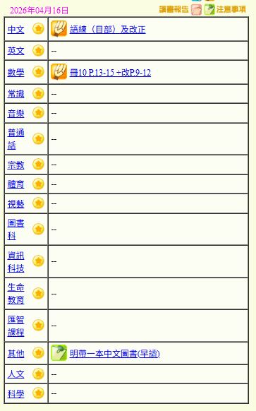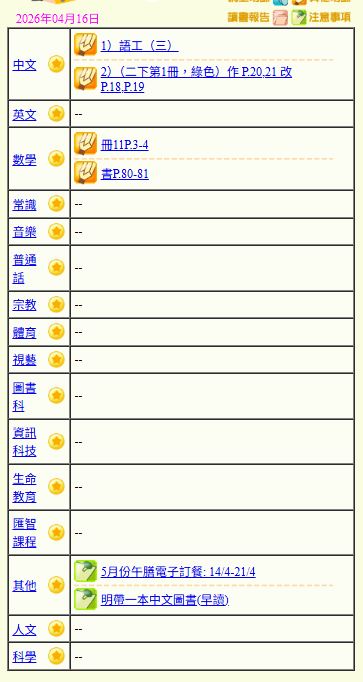 - 班別家課