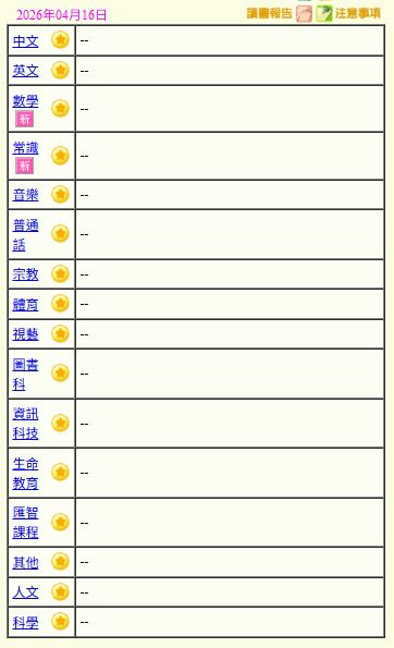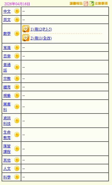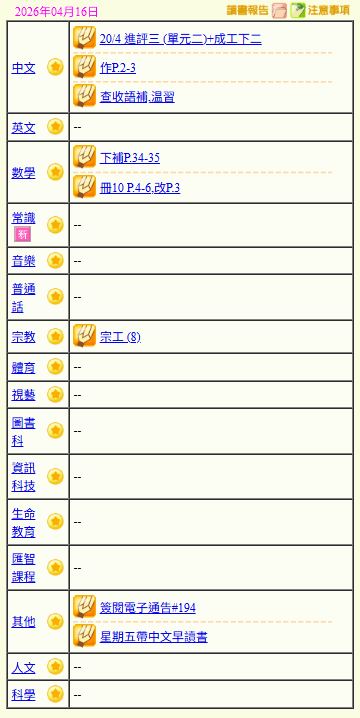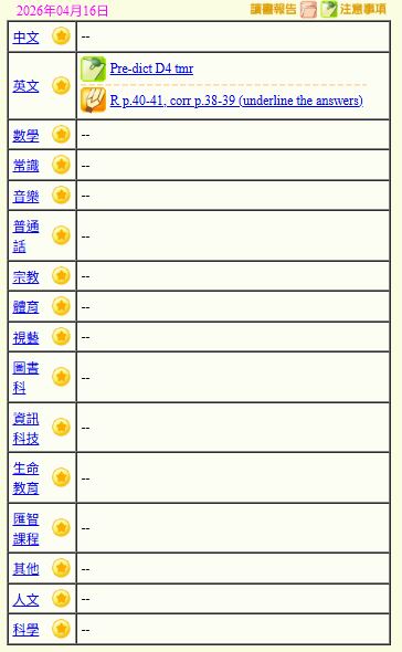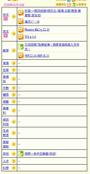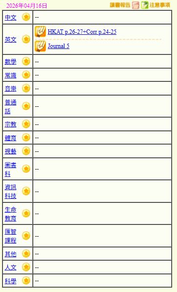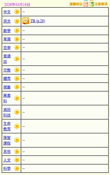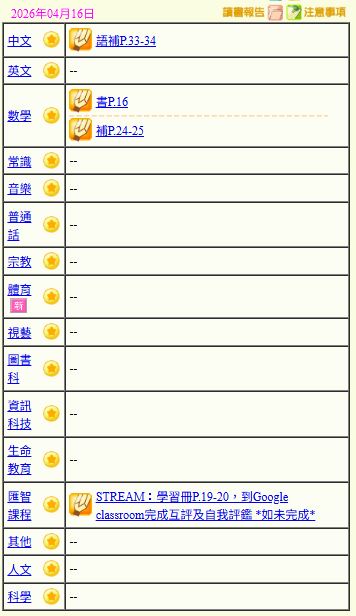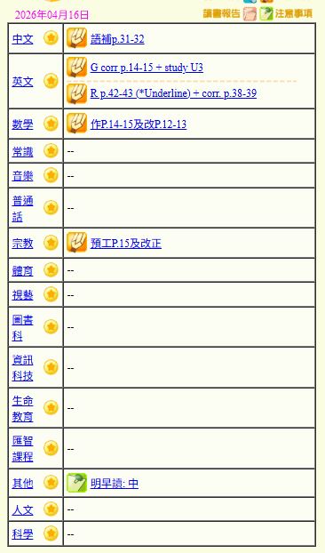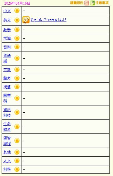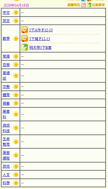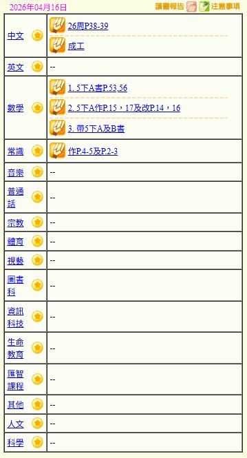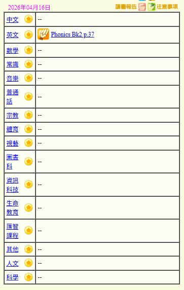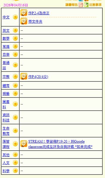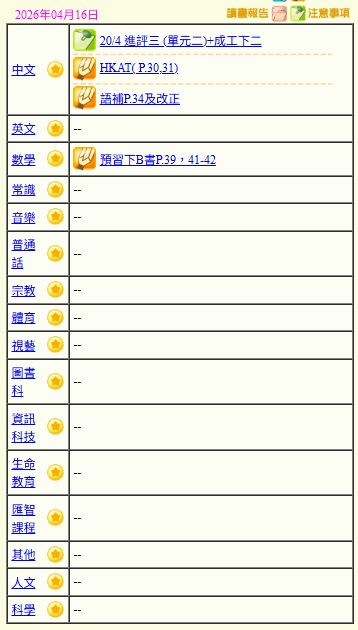- 班別家課