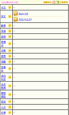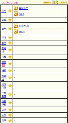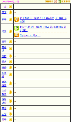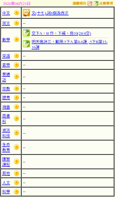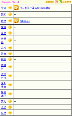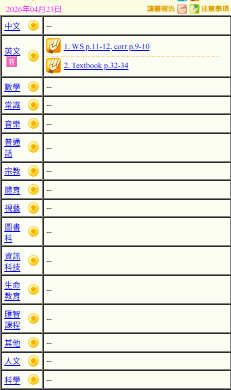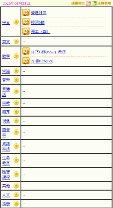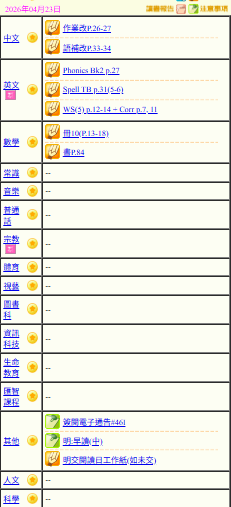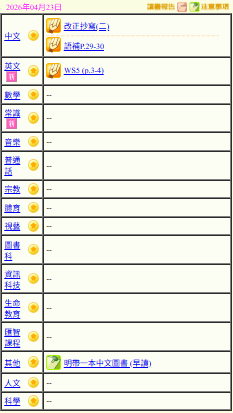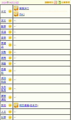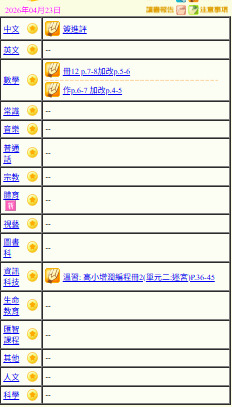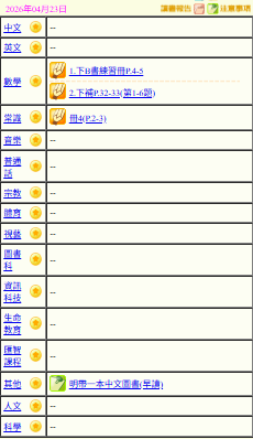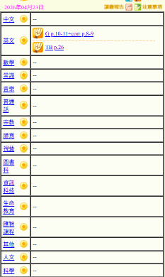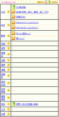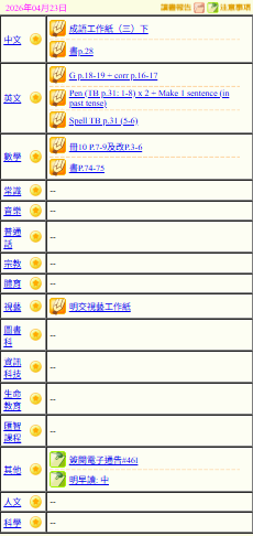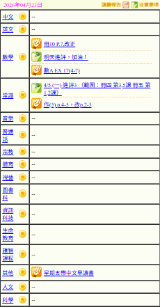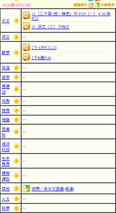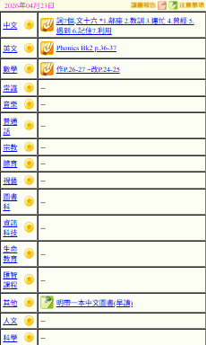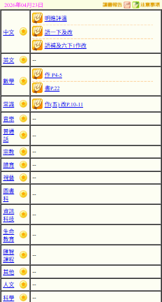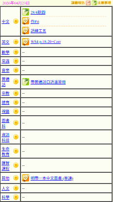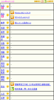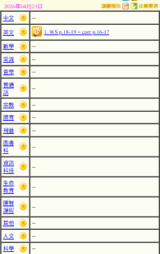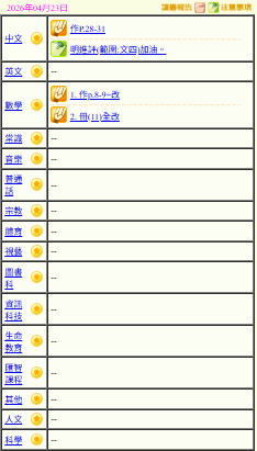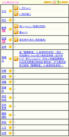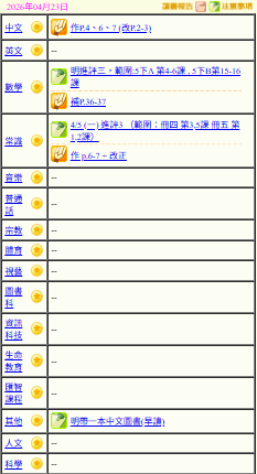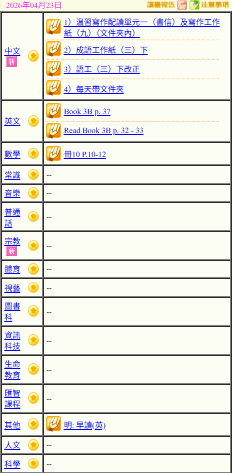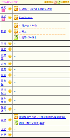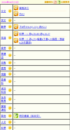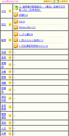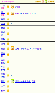 - 班別家課