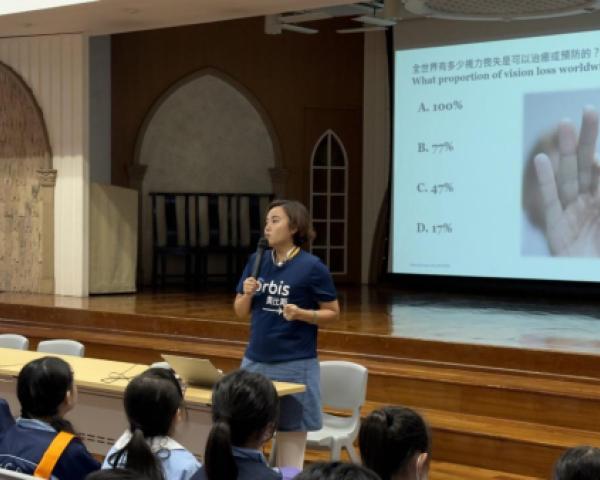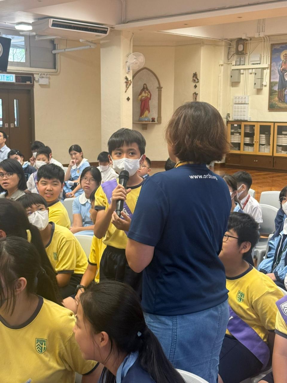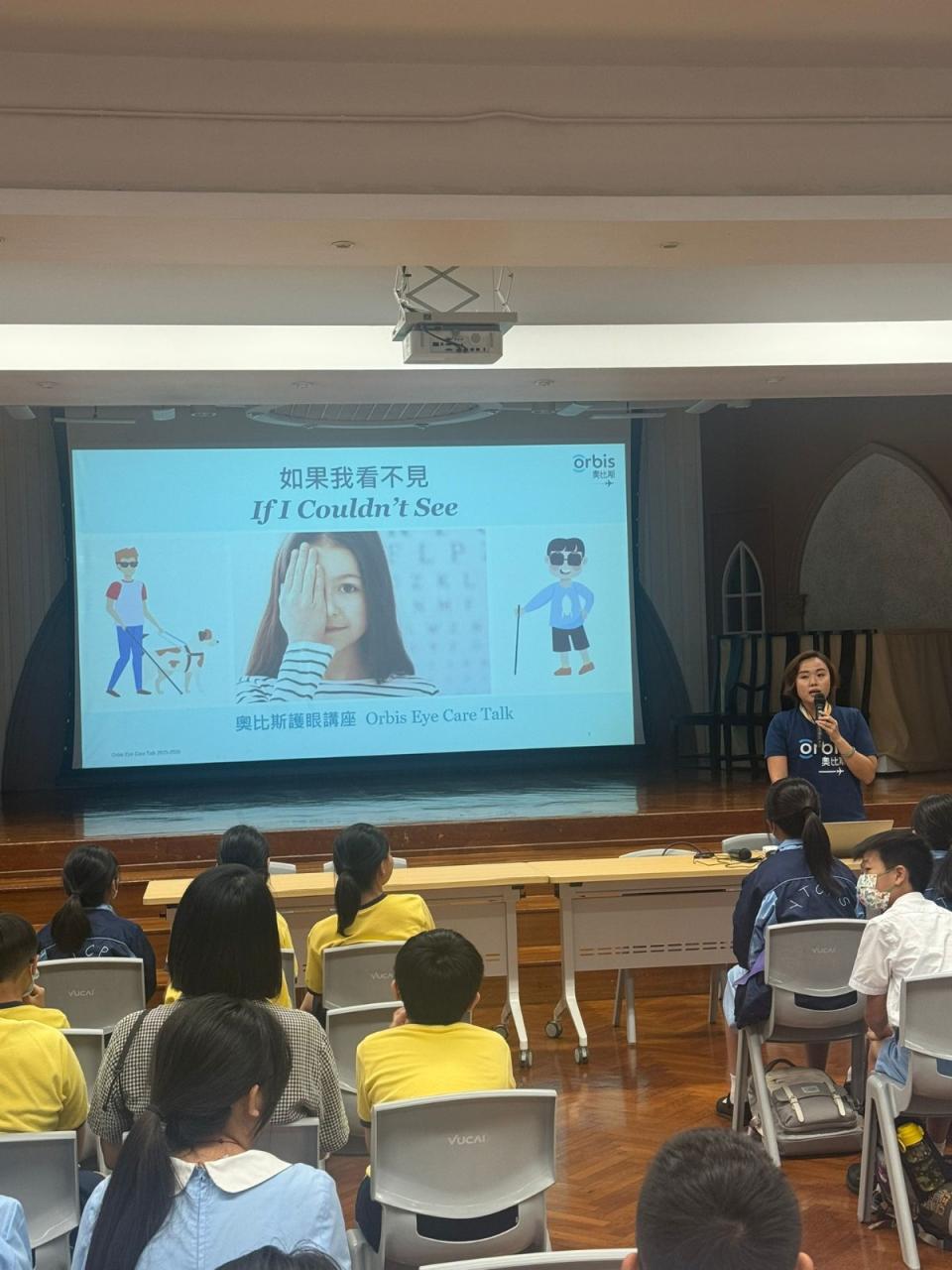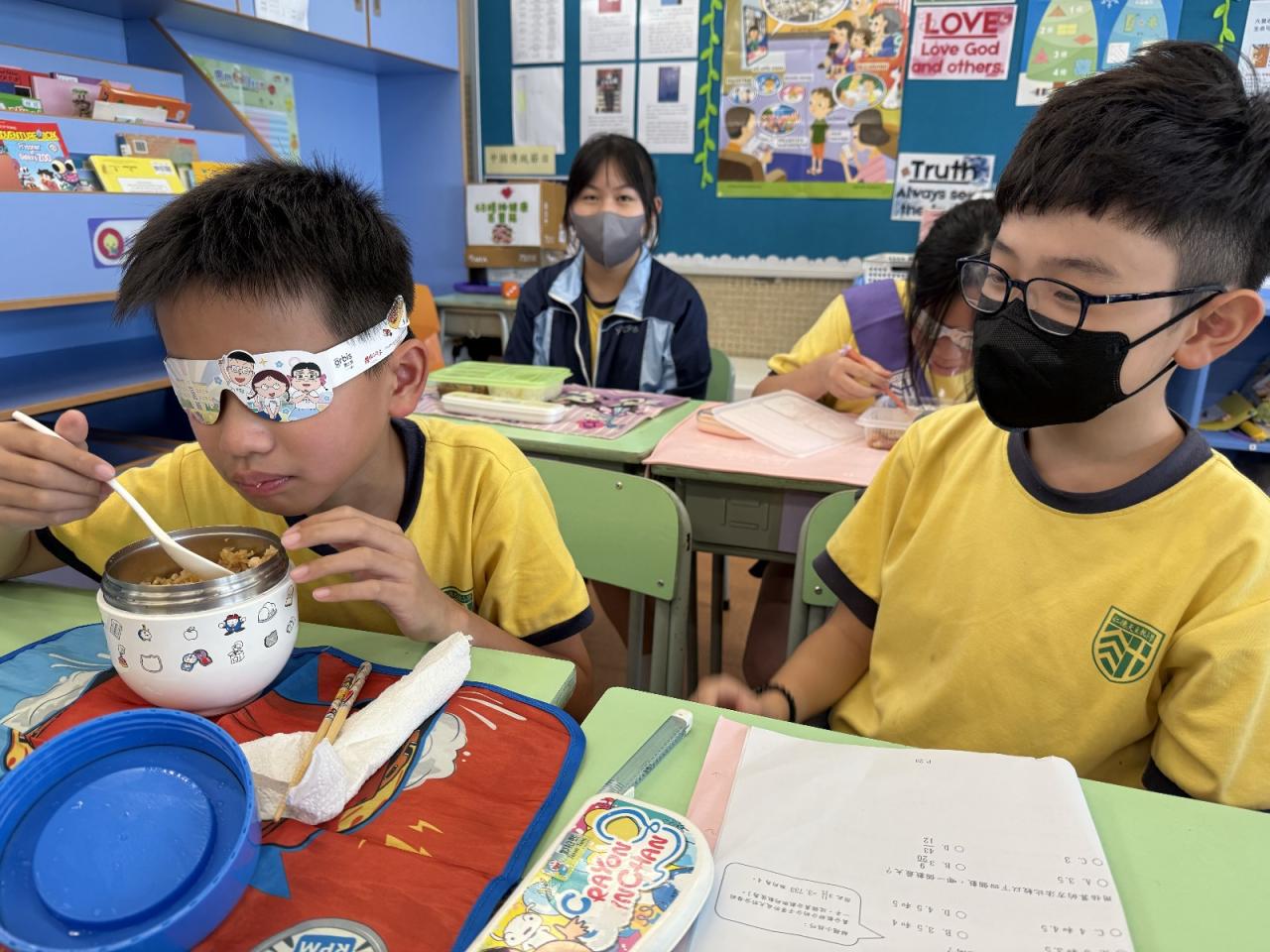 學校於10月13日舉辦了「蒙眼午餐」體驗活動,並於同日下午安排六年級同學參與奧比斯護眼講座,讓同學學習護眼知識及了解失明人士的需要,從而學會珍惜自己寶貴的視力及培養同理心,在日常生活中主動幫助更多有需要的人
