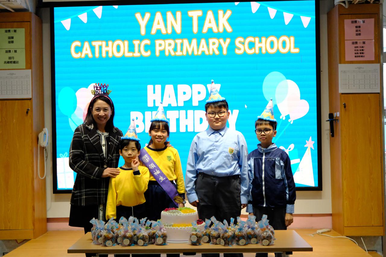 本校在3月3日(二)舉行了「生日祝福禮」(三月份),邀請所有在3月份生日的同學與校長一起唱生日歌和拍照,並互道祝福。每位仁德壽星更會獲派一個紙包蛋糕,大家都吃得十分滋味呢!