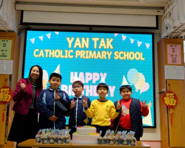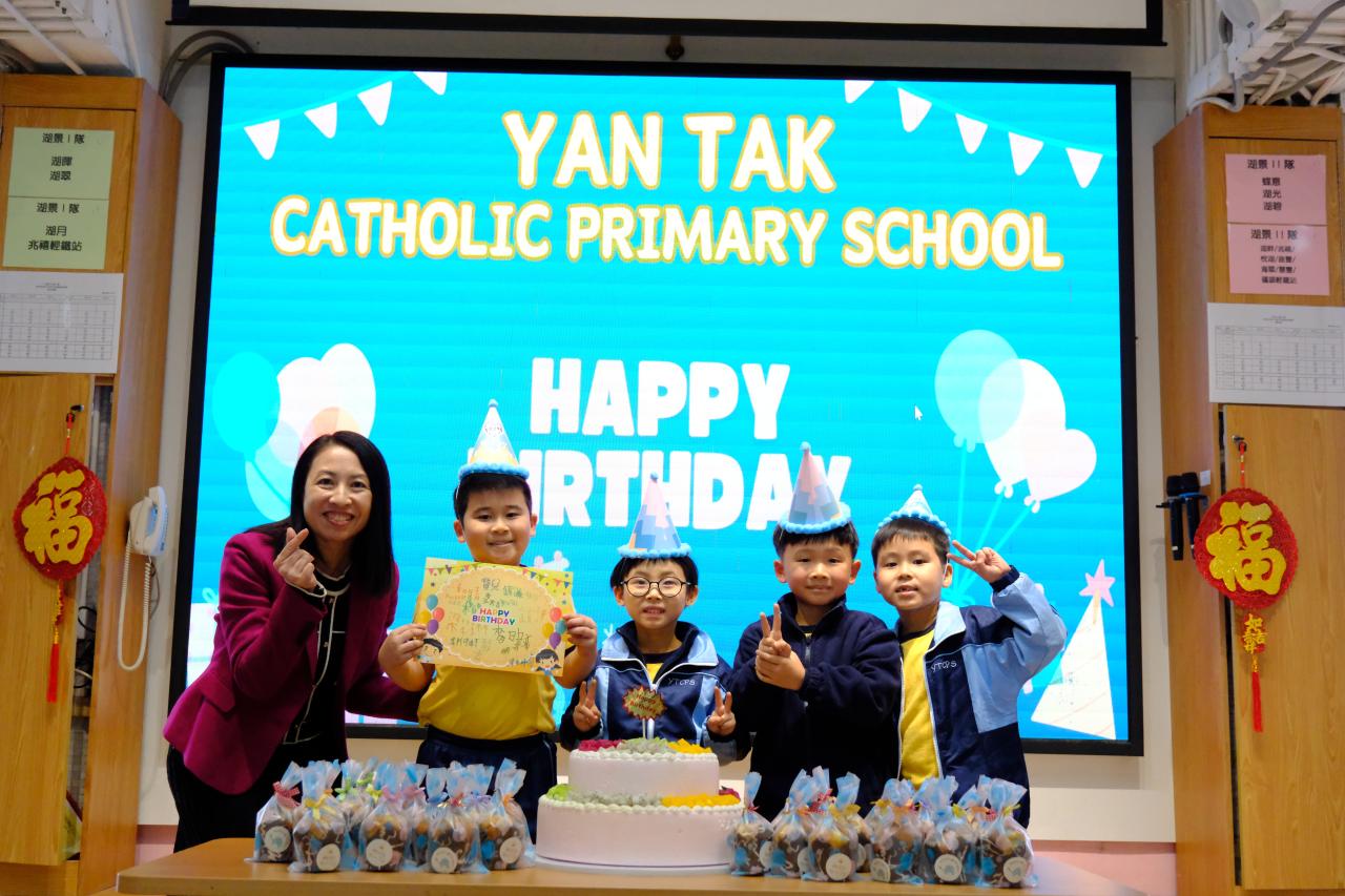 本校在2月3日(二)舉行了「生日祝福禮」(二月份),邀請所有在2月份生日的同學與校長一起唱生日歌和拍照,並互道祝福。每位仁德壽星更會獲派一個紙包蛋糕,大家都吃得十分滋味呢!