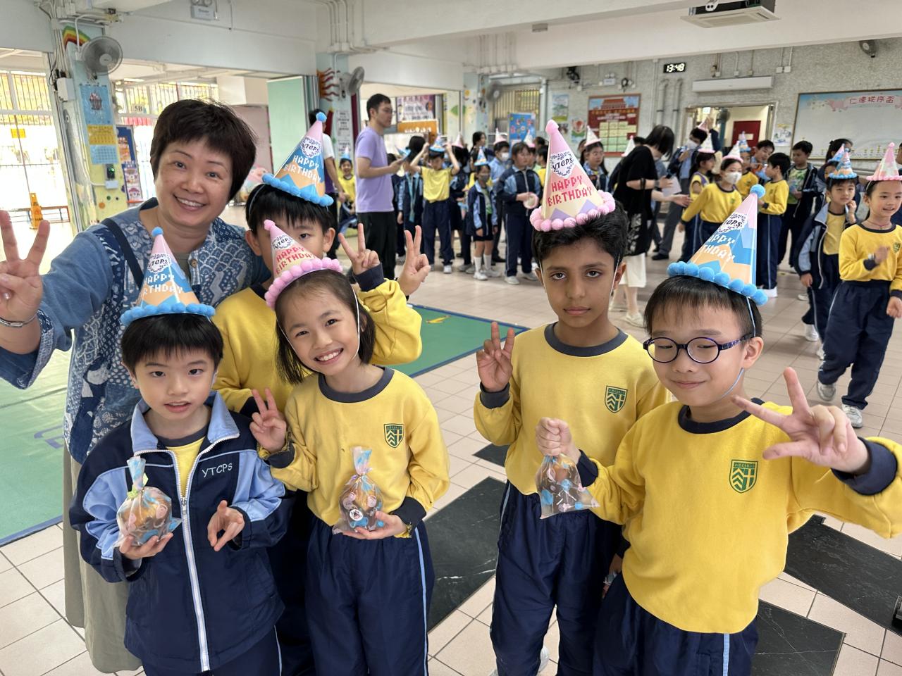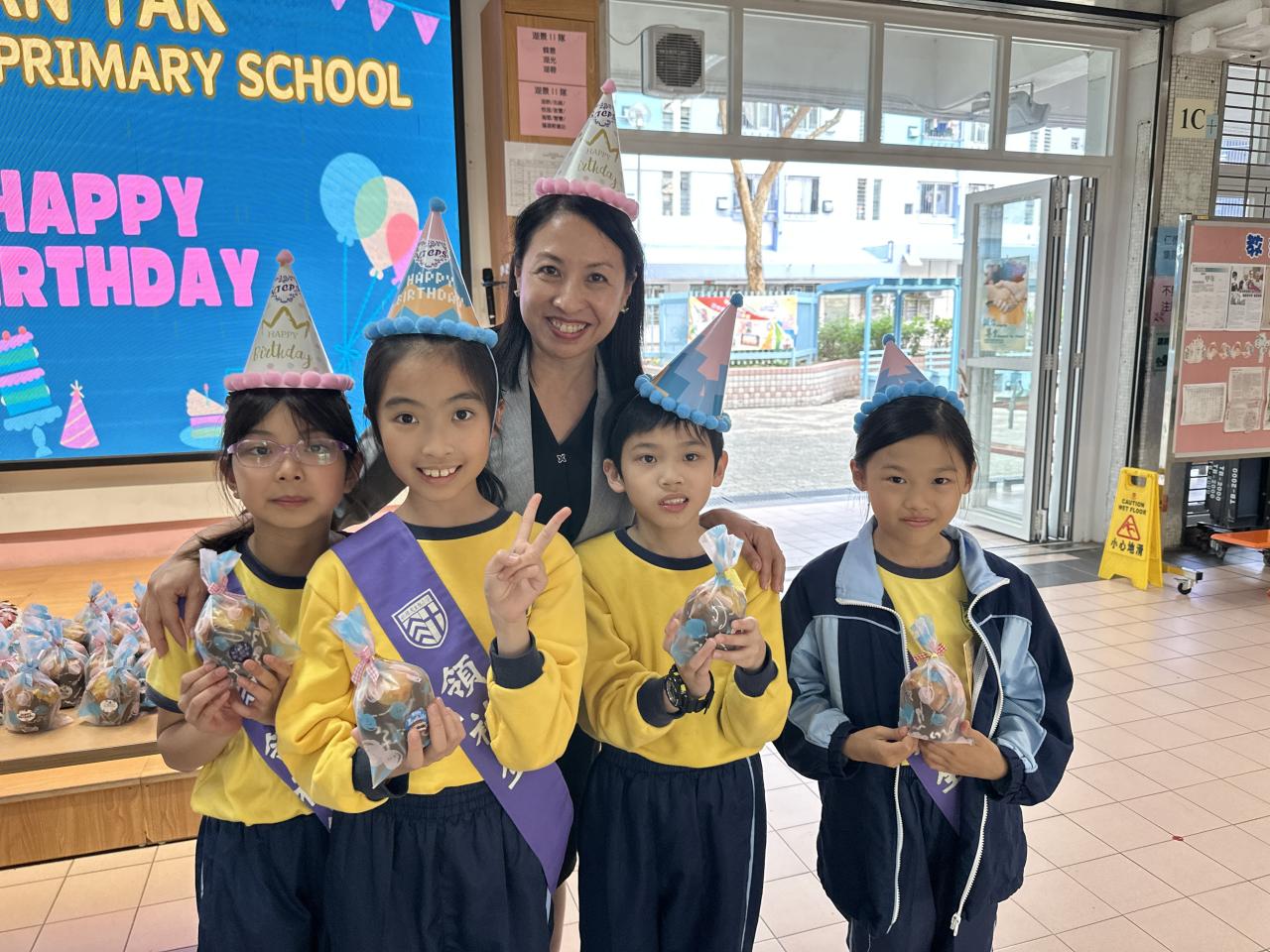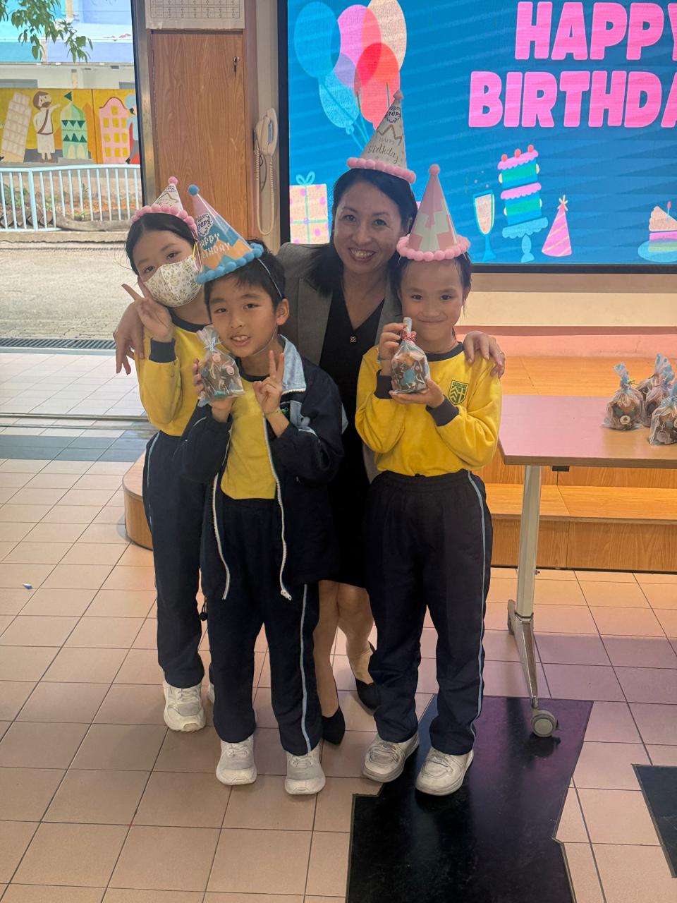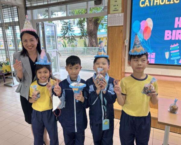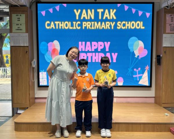本校在3月24日(二)舉行了「生日祝福禮」(四月份),邀請所有在4月份生日的同學與校長一起唱生日歌和拍照,並互道祝福。每位仁德壽星更會獲派一個紙包蛋糕,大家都吃得十分滋味呢!