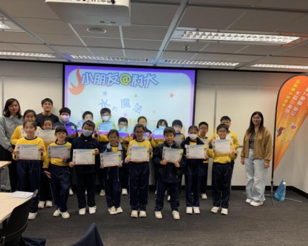 本校部分四至五年級學生參加由香港科技大學資優教育發展中心主辦,田家炳基金會贊助的「小朋友@科大」科學工作坊。導師帶領一眾學生走進水的魔法世界,讓他們化身成為魔法師深入探索水粒子,並在課堂上透過進行不同互動及富趣味性的探究活動來認識水的濃度與密度概念。