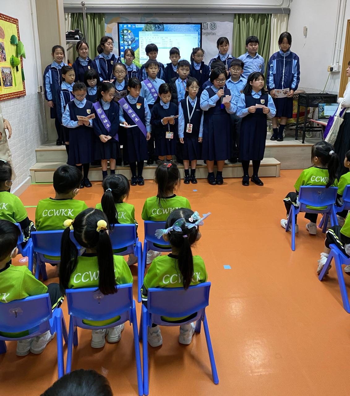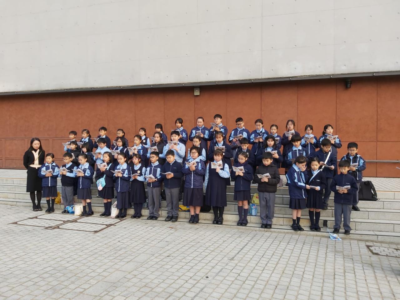 聖誕是一個喜樂的節日,紀念救主耶穌基督降生成人。為了傳揚這個喜訊,本校46位小三至小六同學及老師們分別於12 月上旬到訪蝴蝶邨內的兩間幼稚園,以及在12月5日乘坐開蓬巴士前往西九文化區,以歌聲傳播正能量及愛心傳遞天主是愛的好消息。