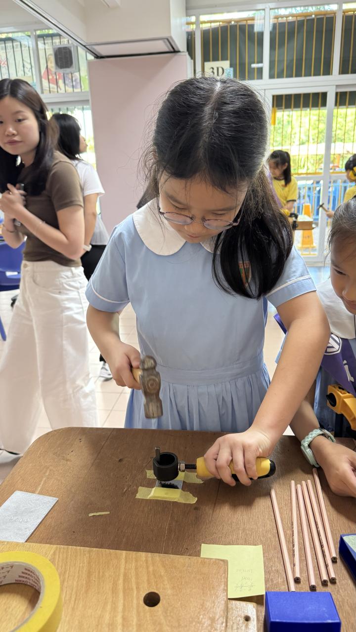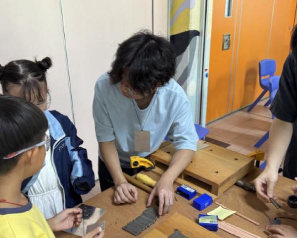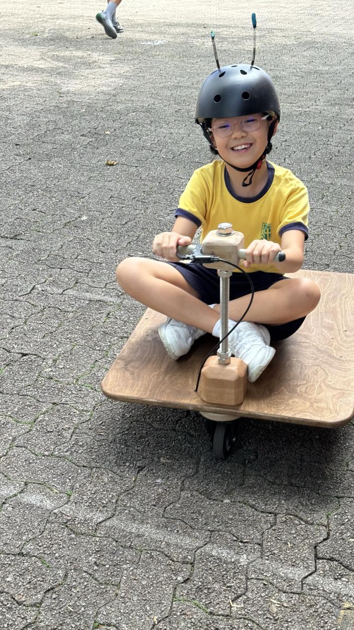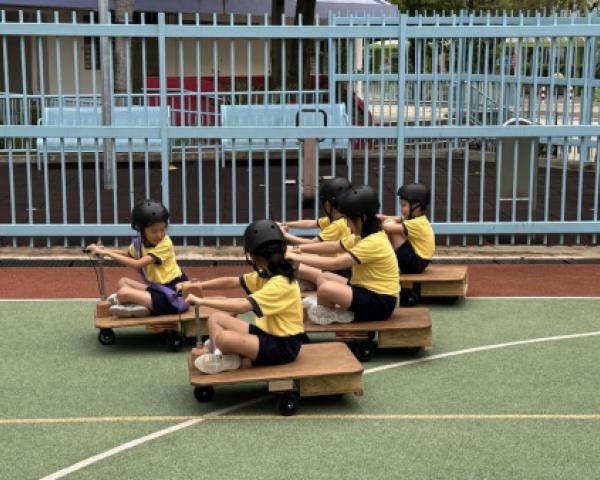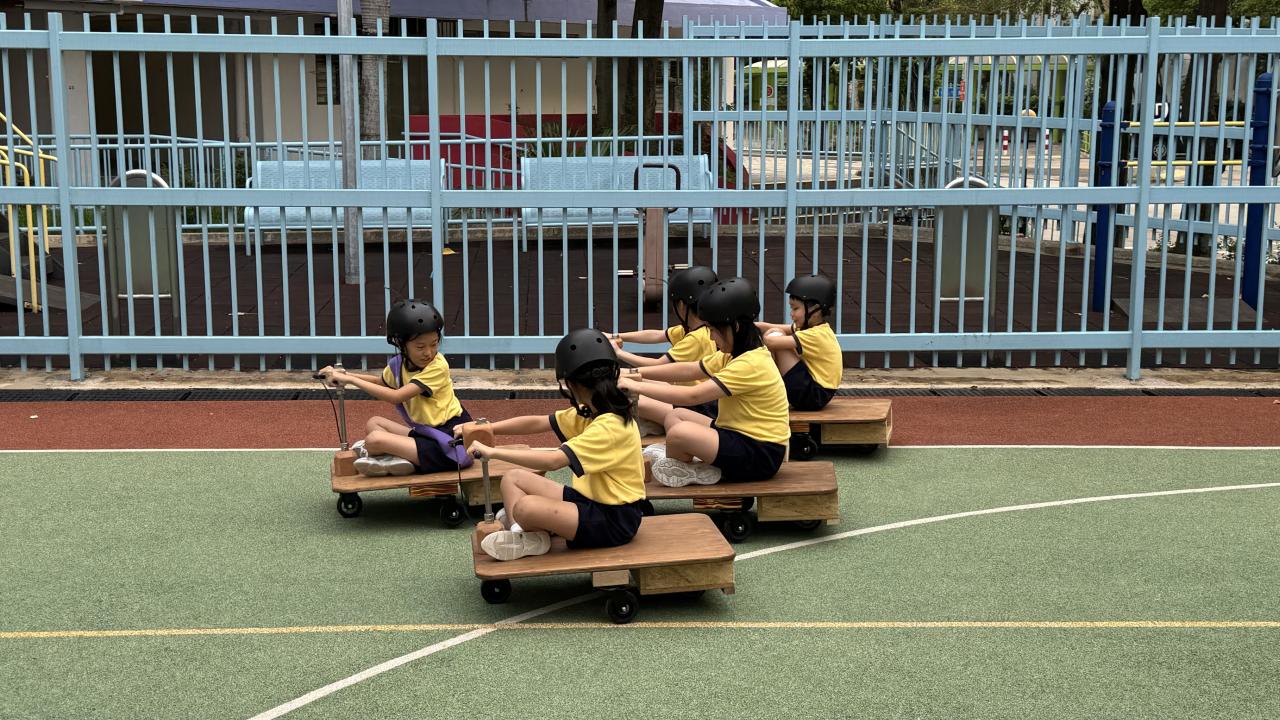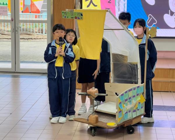 24位四年級學生參與了六節由「PMQ 元創方」舉辦的創意教育項目「Senses in Play」校園工作坊。他們透過七種感官探索周遭環境,由專業導師帶領孩子經歷「設計思維」,並透過建築、藝術和STEAM的跨界體驗,設計及創作了四輛校園電動車。他們更於10月25日進行了成果分享日,邀請了校長及家長體驗校園電動車,漫遊校園。